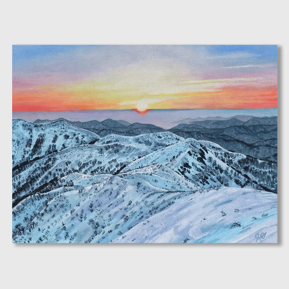 These sunrise-inspired small oil paintings on panel, each measuring 6 x 8 inches, capture the serenity of morning as the sun’s rays spread radiance beyond the horizon. These paintings, with their delicate layers of detail, bring tranquility into any space.
