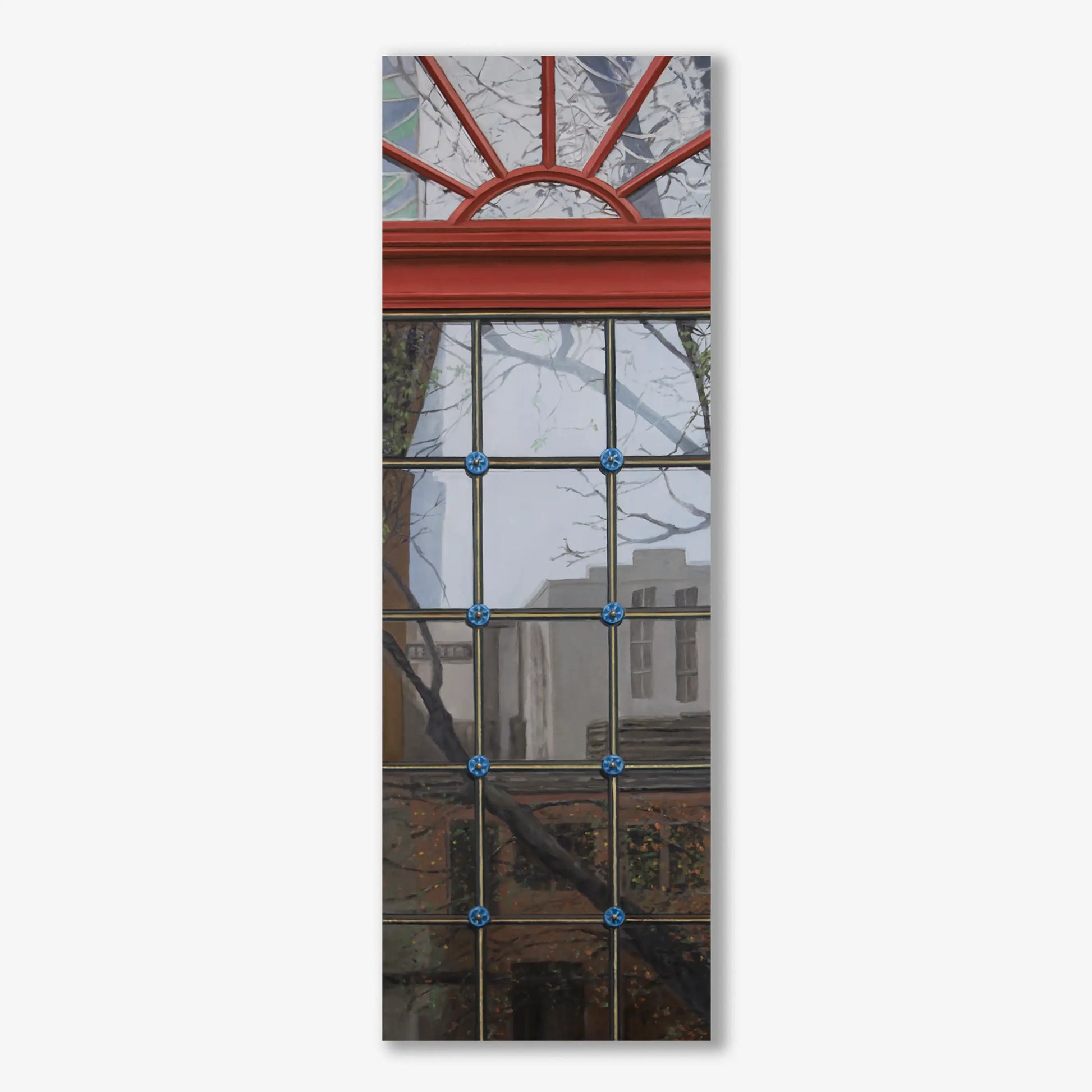 This oil painting centers on the aesthetics of the historic doorways in Chicago's Gold Coast. The composition highlights the intricate artistry of the doorframe designs, complemented by surrounding city reflections. A "sister" painting, “Forty-Four Above the Hancock", also captures the elegant architecture design and mirrored views of the city reflections.