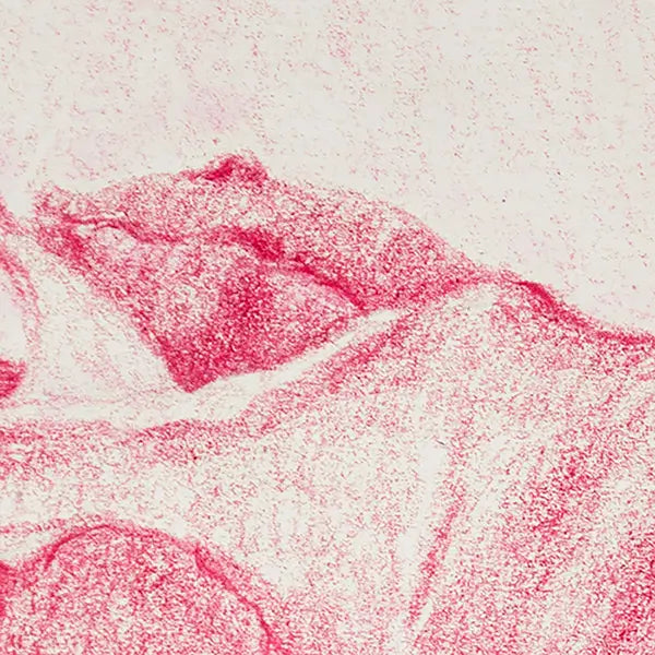 This artwork was rendered using Magenta Prismacolor colored pencil.